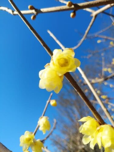 金曜日に国立付近にお住まいのTwitterでフォローしている方が、蝋梅の写真を揚げた。えええ、もう?ということは一番早くに咲く浜離宮は?検索すると6日前に咲き始めましたとのツイートが!慌てて土曜日に向かいました。あいにく曇り空。風が冷たい。今回は…